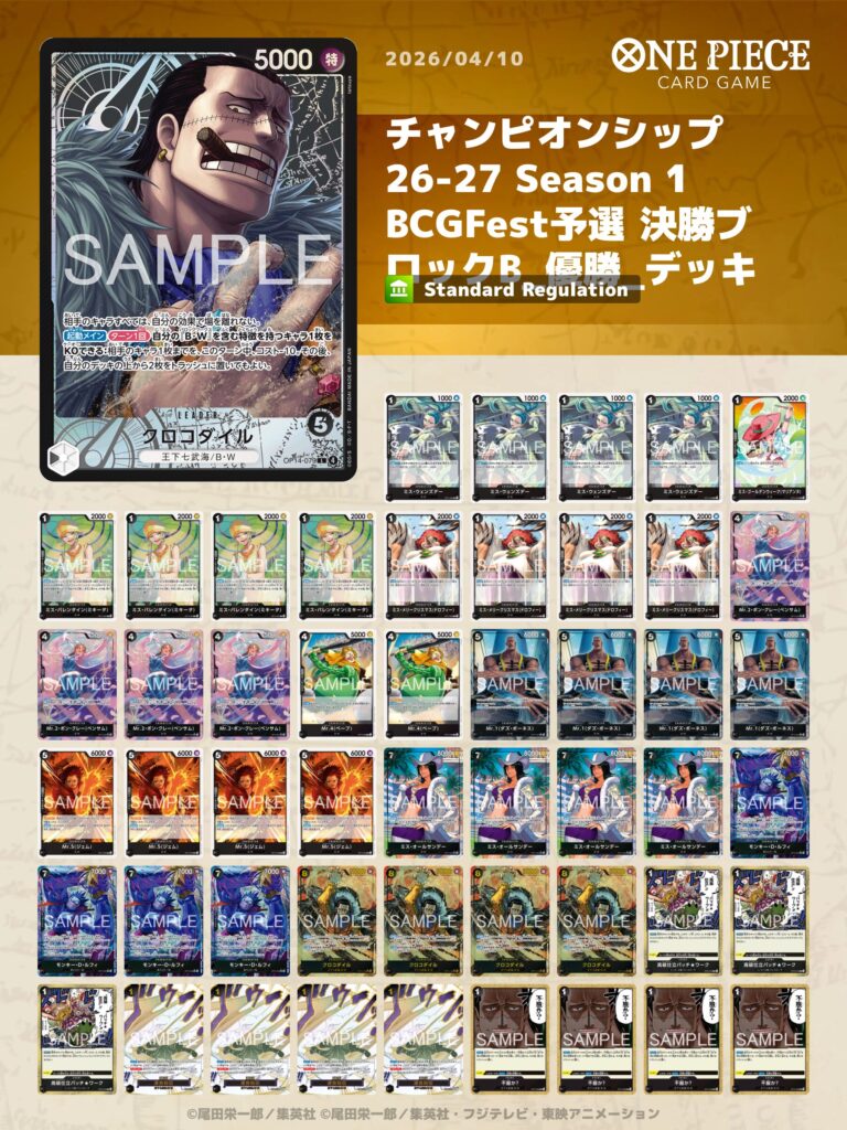 本デッキの強みは、トラッシュのカードもリソースとして活用できる点にあります。特徴を《B・W》で構成することで、サーチカードにより選択肢が多く、安定したゲーム運びが可能です。具体的には、「④ベンサム」「④ベーブ」「⑦オールサンデー」といった、トラッシュからキャラを回収・登場させる重要カードを活用することで、安定した展開を実現し、フィニッシャーである「⑧クロコダイル」へとつなげることができます。さらに、KO時効果を持つキャラとトラッシュからキャラを“復活”させるカードのシナジーを活かすことで、リソース差を広げることが可能です。終盤には「⑦オールサンデー」「⑧クロコダイル」を連続で登場させることで、相手の盤面を完全に制圧することができます。