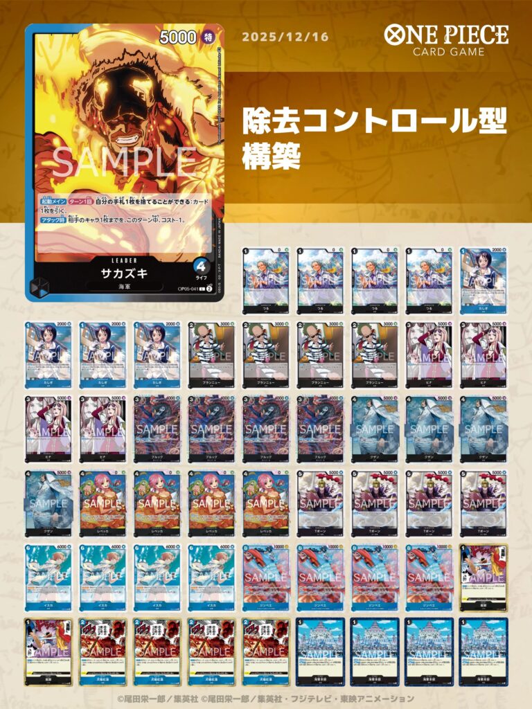 リーダー「サカズキ」の効果によって手札調整が容易に行える点に加え、毎ターン相手キャラのコストを下げられるため、デッキ全体の除去性能が大きく向上します。