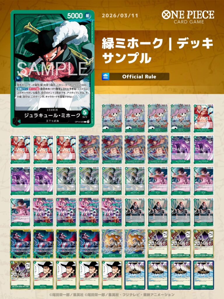 本カードは「③ミホーク」とのシナジーが高く、レスト状態で登場してもターン終了時にアクティブに戻るため、相手にKOされにくいのが強みです。攻撃の起点となりつつ、リーダー「ミホーク」の効果を継続的に使うための重要な役割として採用候補として挙げられます。