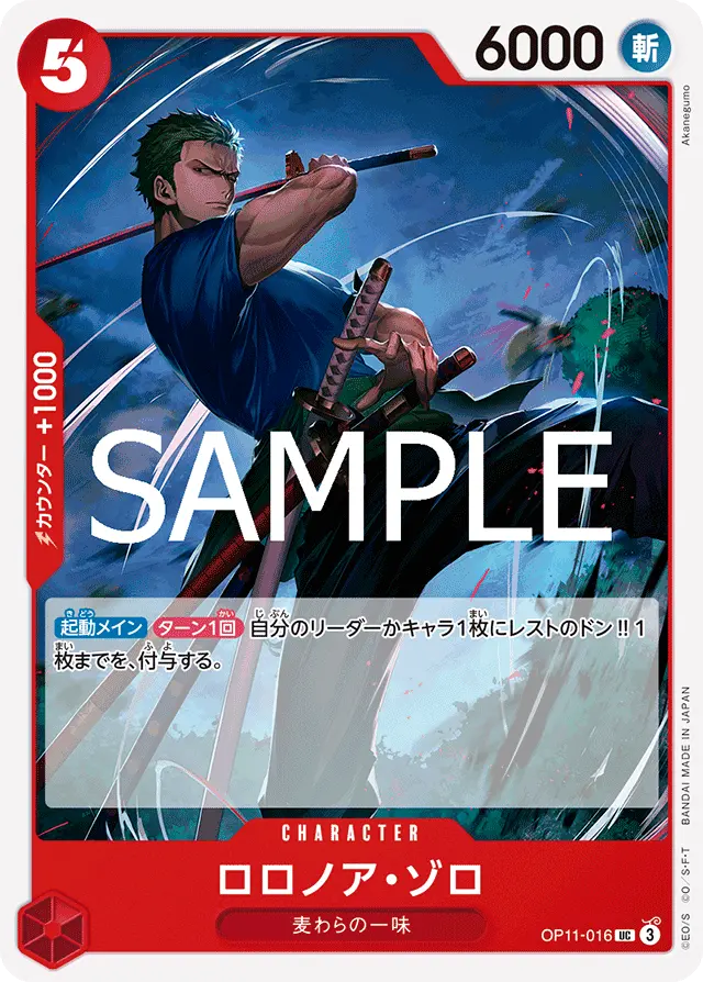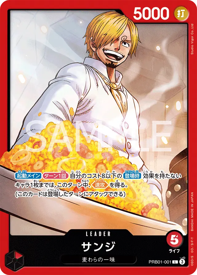本カードは、リーダー「サンジ」の効果で4コスト6000の速攻アタックが可能な点が魅力です。